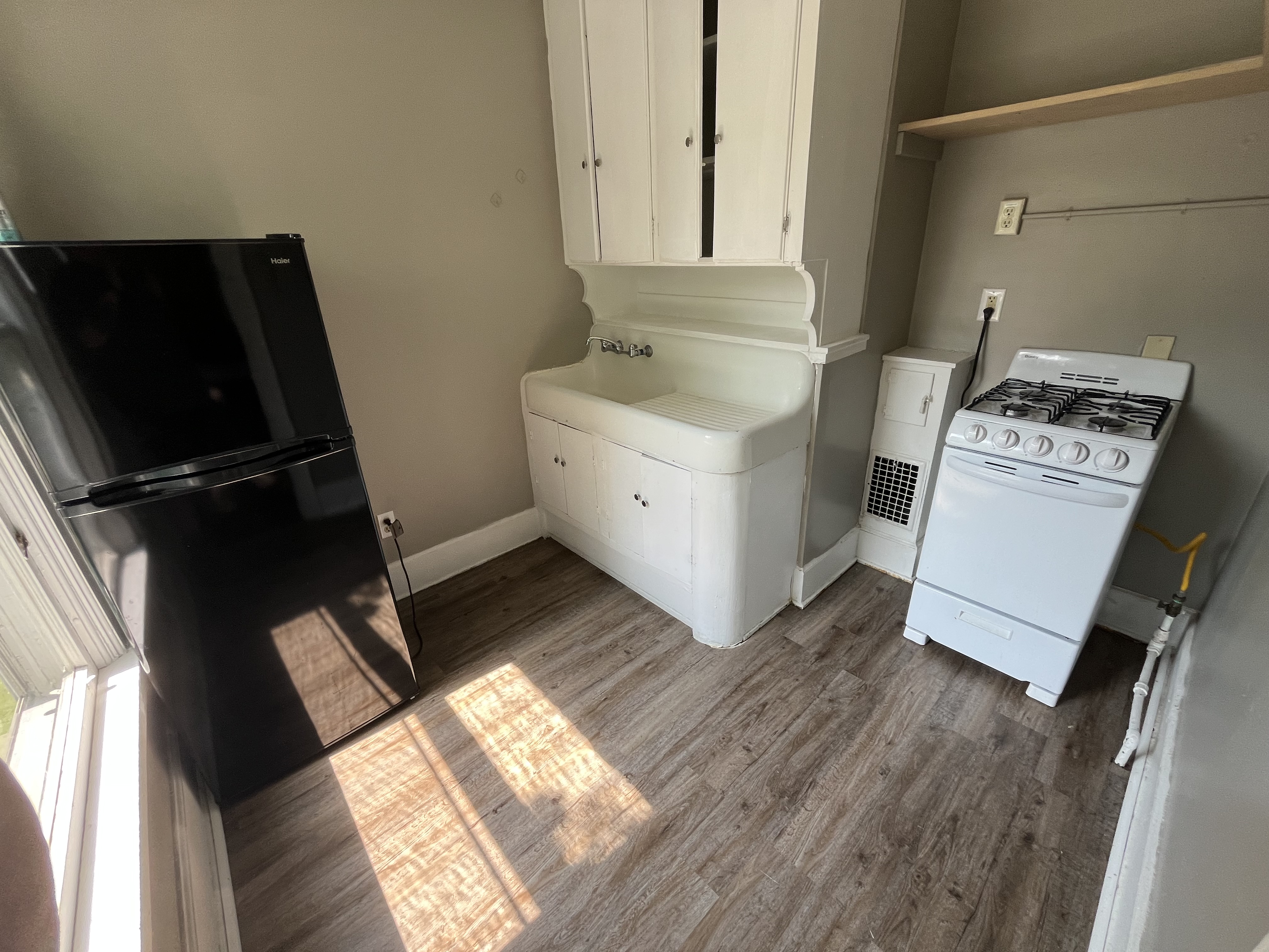 First months and security due upon move in. Walk-in closet in bedroom. Updated recently. Gas stove and gas heat. Off-street Parking.